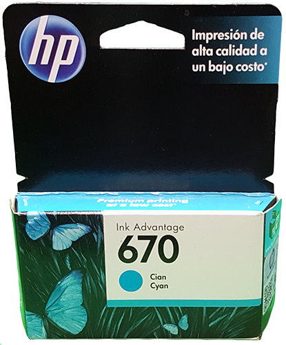 Cartucho HP 670 Cian, rinde 300 páginas.