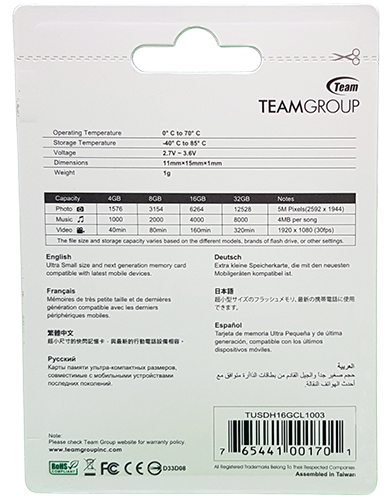 Micro SDHC con adaptador SD class 10 16GB Team Group.